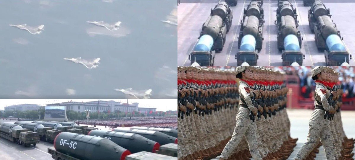 राष्ट्रपति सी चिनफिङको सम्बोधनपछि चीनको विजय दिवस परेडमा चिनियाँ सैन्य शक्ति प्रदर्शन गरिएको थियो। यसमा आणविक क्षमता भएका अन्तरमहादेशीय ब्यालिस्टिक क्षेप्यास्त्रहरू पनि समावेश छन्।