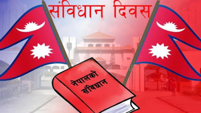 आज असोज ३ गते संविधान दिवस तथा राष्ट्रिय दिवस २०८२ देशभर विविध कार्यक्रमका साथ मनाइँदैछ । यस अवसरमा राष्ट्रपति रामचन्द्र पौडेलको प्रमुख आतिथ्यतामा बिहान ८ः३० बजे सैनिक मञ्च टुँडिखेलमा विशेष समारोह आयोजना हुदै छ ।समारोहमा प्रधानमन्त्री सुशीला कार्कीले सम्बोधन गर्ने कार्यक्रम तय भएको छ । २०७२ साल असोज ३ गते लामो संघर्ष र बलिदानीपछि संविधानसभाबाट नेपालको संविधान जारी गरिएको थियो । दोस्रो संविधानसभाले लामो छलफल र विवादपछि तयार पारेको संविधानलाई तत्कालीन राष्ट्रपति डा. रामवरण यादवले नयाँ बानेश्वरस्थित अन्तर्राष्ट्रिय सम्मेलन केन्द्रमा घोषणा गरेका थिए ।संविधान जारी भएको दिनलाई स्मरण गर्दै हरेक वर्ष असोज ३ गतेलाई संविधान दिवसका रूपमा मनाइँदै आएको छ ।