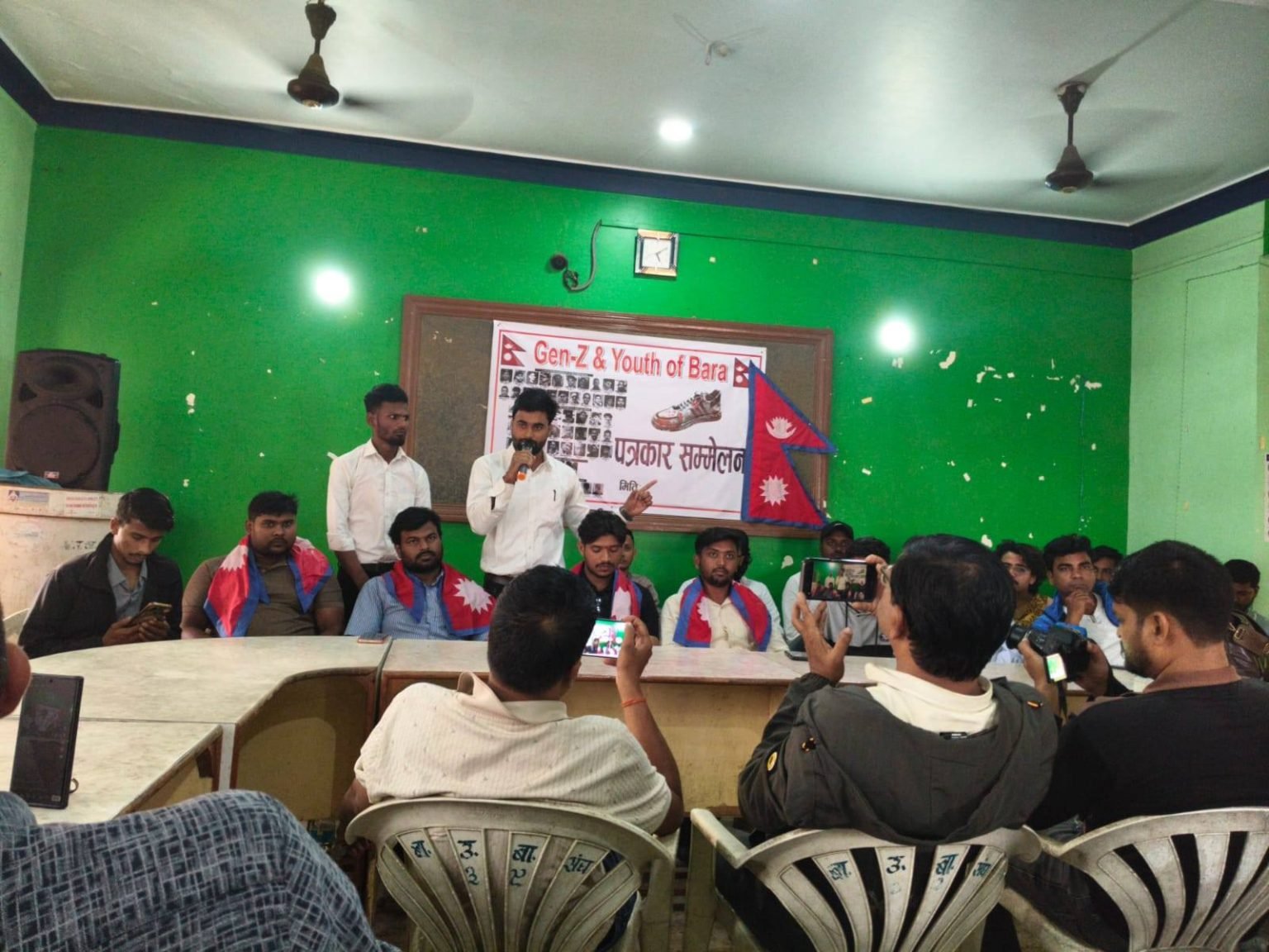 वीरगञ्ज। बाराका १६ वटै स्थानीय तहमा जेनजी समुह गठन गर्ने अभियान सुरु भएको छ। बाराको कलैयास्थित बारा उधोग बाणिज्य संघको सभाहलमा शनिबार जेनजी र युथ अफ बाराले पत्रकार सम्मेलन गरी आफनो अगामी रणनिती बारे जानकारी गराएको हो ।पत्रकार सम्मेलनमा बोल्दै जेनजीका बारा संयोजक स्वराज उपाध्यायले अगामी कार्तिक २९ गतेसम्म जिल्लाका १६ वटै पालिकामा जेनजी समुह गठन गरिने तथा मंसिर ६ गते जिल्ला भेला गरिने जानकारी गराएका हुन । उनले जेनजी युवालाई एक जुट हुन आग्रह गरे । उनले गाउँ गाउँ र टोल टोलमा पुगेर भ्रष्टाचार बिरुद्ध अभियान समेत सञ्चालन गरिने बताए ।उनले जेनजी युवा देश बनाउने काममा लाग्ने समेत जनाए । उक्त पत्रकार सम्मेलनमा बोल्दै शौरभ पाण्डेयले जेनजी पुस्ताले सबैले गर्व गर्ने कार्य गर्ने बताए । उनले गलत कार्य गर्नेलाई कारवाही गर्नुपर्नेमा जोड दिए । राम्रो काम गर्नेलाई जेनजी पुस्ताले सहयोग गर्ने समेत बताए ।