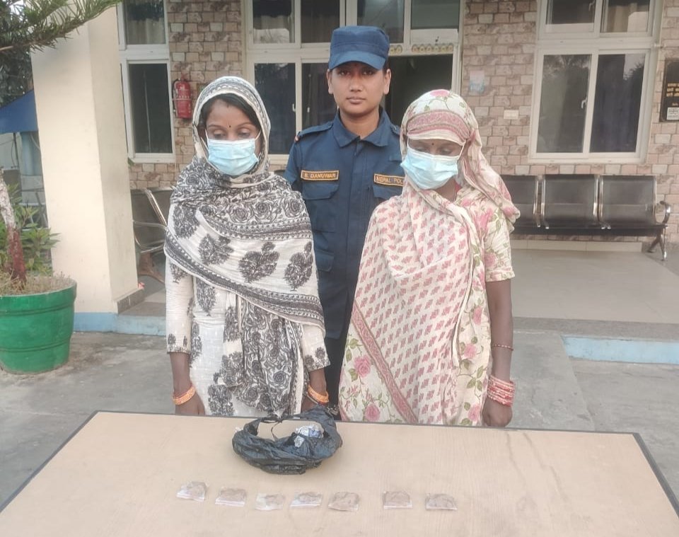 वीरगञ्ज,२९ कात्तिक  । ईलाका प्रहरी कार्यालय सिमरा बाराको टोलीले लागुऔषध ब्राउन सुगरसहित दुई जना महिला पक्राउ गरेको छ।पक्राउ पर्नेमा पर्सा जिल्लाको पटेर्वा सुगौली गाउँपालिका वडा नं. ६ बस्ने ३५ बर्षीया सुसिला देवी र पोखरिया नगरपालिका वडा नं.  ७ बस्ने ३० वर्षीया पुजा देवि पक्राउ परेको सिमराका प्रमुख एवम् प्रहरी नायब उपरीक्षक वेद जोशीले जानकारी दिएका छन् ।बारा जिल्लाको जितपुरसिमरा उपमहानगरपालिका वडा नं.  ०५ लल्का पुल स्थितमा इलाका प्रहरी कार्यालय सिमराबाट प्रहरी नायब निरीक्षक  दिपककुमार बस्नेतको कमाण्डमा र लागु औषध नियन्त्रण व्युरो पर्साबाट प्रहरी सहायक निरीक्षक  गोपाल खड्काको कमाण्डमा विशेष सूचनाको आधारमा खटिएको टोलिले उनीहरुलाई पक्राउ गरेको हो।