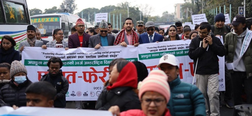 काठमाडौँ । ‘अपाङ्गता समावेशी समाजको प्रतिबद्धता सामाजिक उन्नतिको संवर्द्धन’को नारा सहित अपाङ्गता भएका व्यक्तिहरूको ३४ औँ अन्तर्राष्ट्रिय दिवस आज देश विदेशमा मनाइएको छ । यस अवसरमा काठमाडौँमा प्रभातफेरी गरिएको छ। नेपाल सरकार महिला, बालबालिका तथा ज्येष्ठ नागरिक मन्त्रालयको आयोजनामा तथा राष्ट्रिय अपाङ्ग महासंघ नेपालको समन्वयमा आयोजित प्रभातफेरीमा विभिन्न संघ–संस्था, अपाङ्गता क्षेत्रका प्रतिनिधि, सरोकारवाला निकाय तथा समुदायको उत्साहजनक सहभागिता रहेको छ।