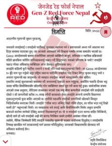 वीरगञ्ज। जेनजी रेडफोर्सले बिचौलिया दीपक भट्टसँग बिजनेस साझेदारी गरेको आरोप लागेका गृहमन्त्री सुधन गुरुङलाई राजीनामा दिन आग्रह गरेको छ । सोमबार रेडफोर्सले विज्ञप्ति जारी गर्दै गृहमन्त्री गुरुङलाई राजीनामा दिन आग्रह गरेको हो ।